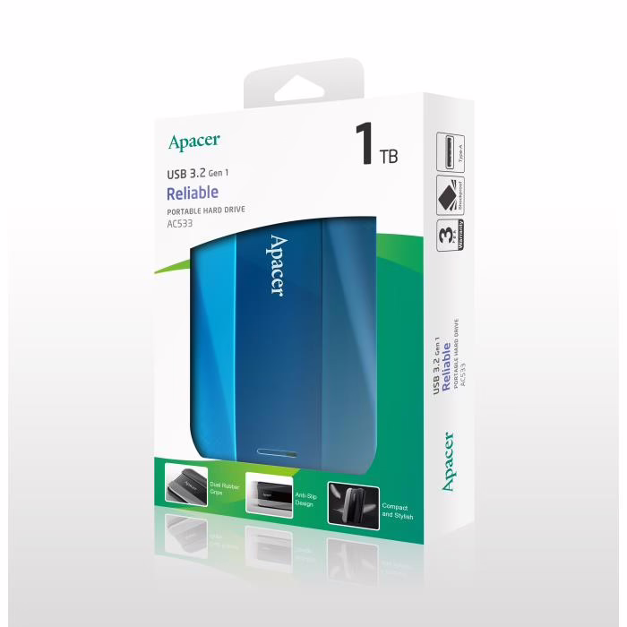 Εξωτερικός Σκληρός Δίσκος 2.5″ Apacer AC533 1TB USB 3.2 Gen1 Μπλέ