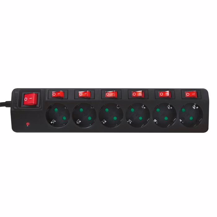 Πολύπριζο Ασφαλείας 6 Θέσεων LogiLink LPS233, με 7 Διακόπτες 1.5m Μάυρο