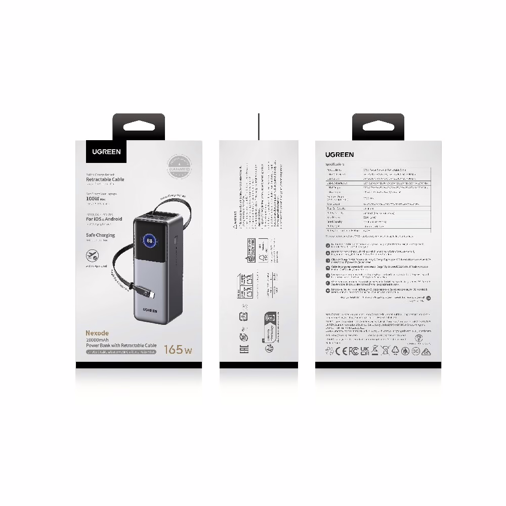 Power Bank 20000mAh PD 165W UGREEN PB726 55987B 2 Θέσεων, με καλώδιo USB-C 240W Γκρι